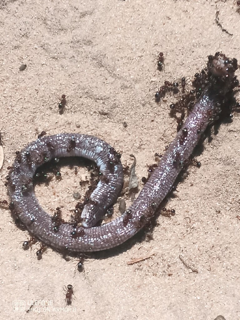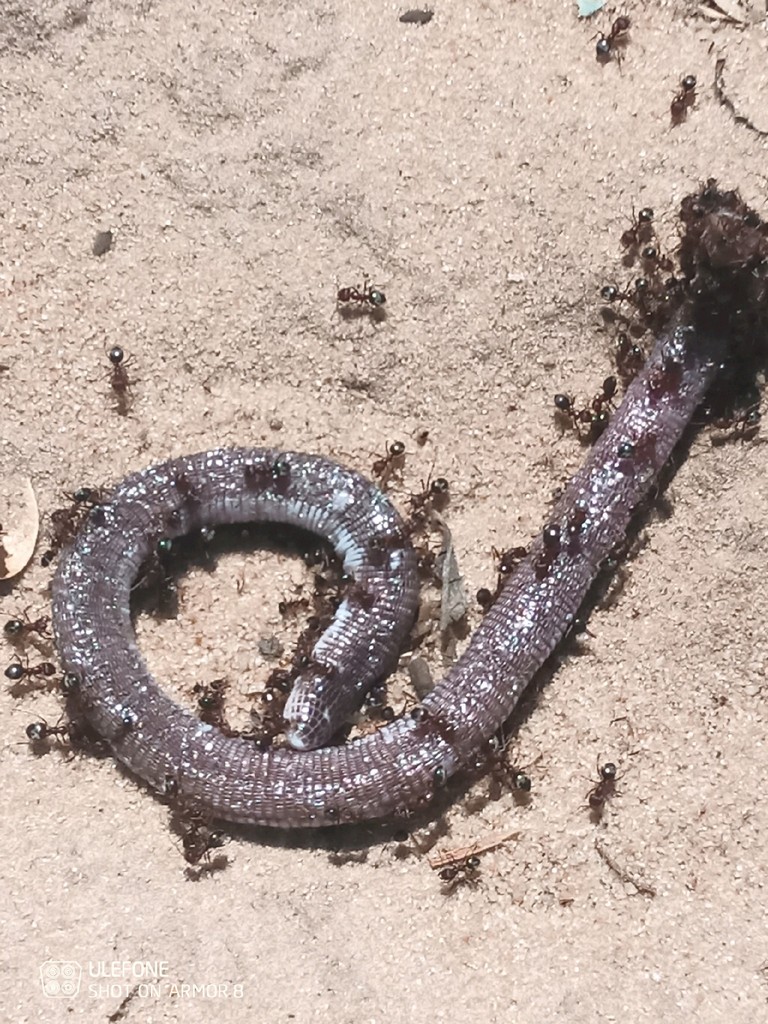 The Western Thread Snake is usually very thin and has polished scales, while the body is cylindrical. The color varies from dark grey to a pink brown color.