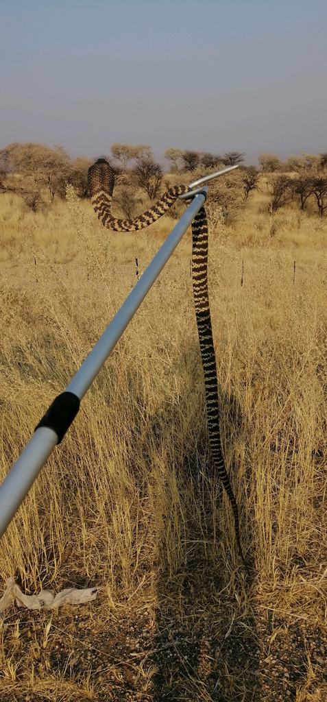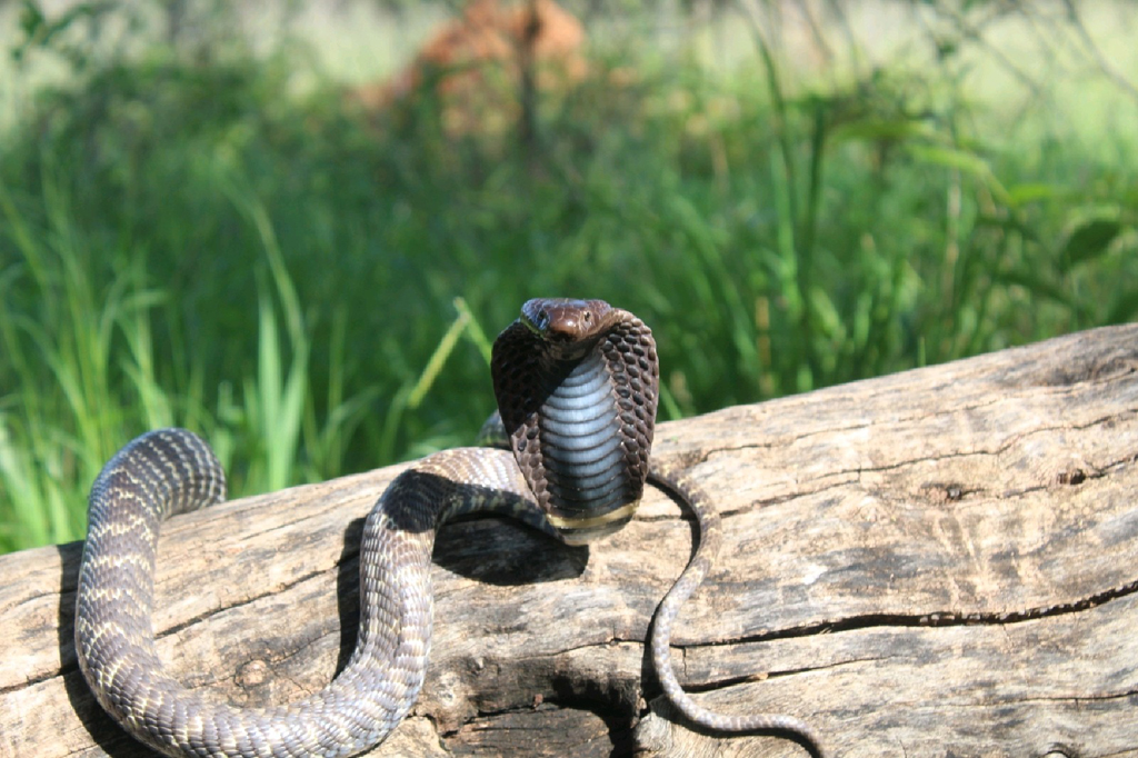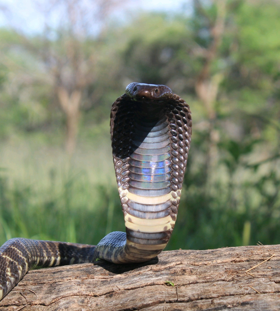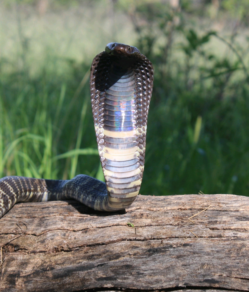Western Barred Spitting Cobra (Zebra Cobra) can be easily identified by the black crossbars which encircle the body. It is a nocturnal snake which actively hunts for for prey (rodents, birds, lizards, snakes). When provoked it will spread a dark hood and spit venom. It has a potent cytotoxic (cell tissue destroying) venom which causes intense pain, swelling and necrosis.