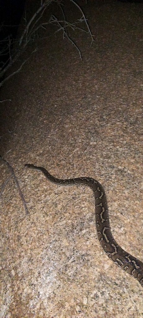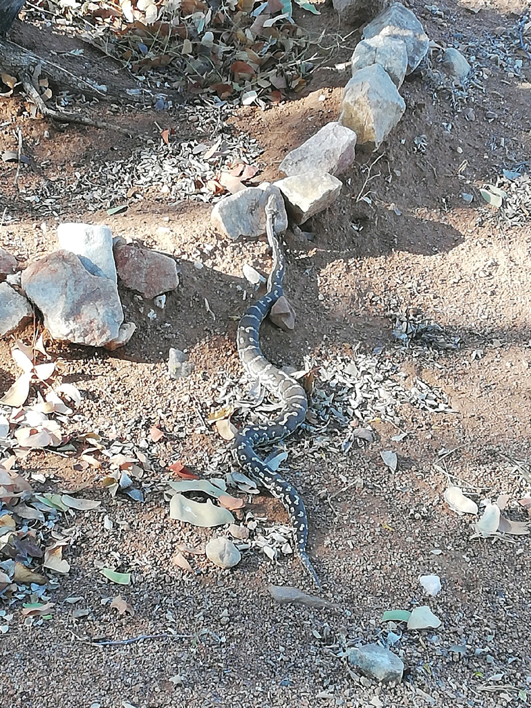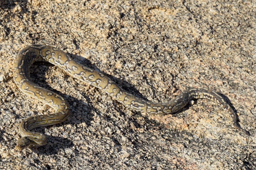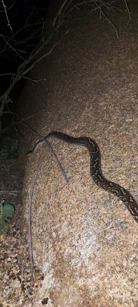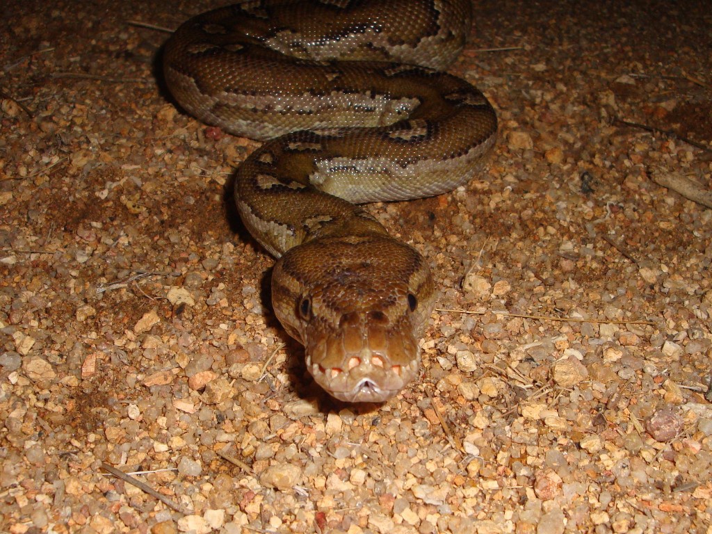 This snake is mainly active at night when it forages for food. They mainly occur in riverine bush and rugged rocky terrain and prefer rocky outcrops where they hunt for small rodents. When threatened they roll up into a defensive ball.